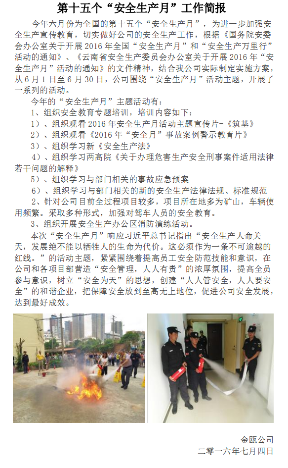 第十五個“安全生產(chǎn)月”工作簡報
