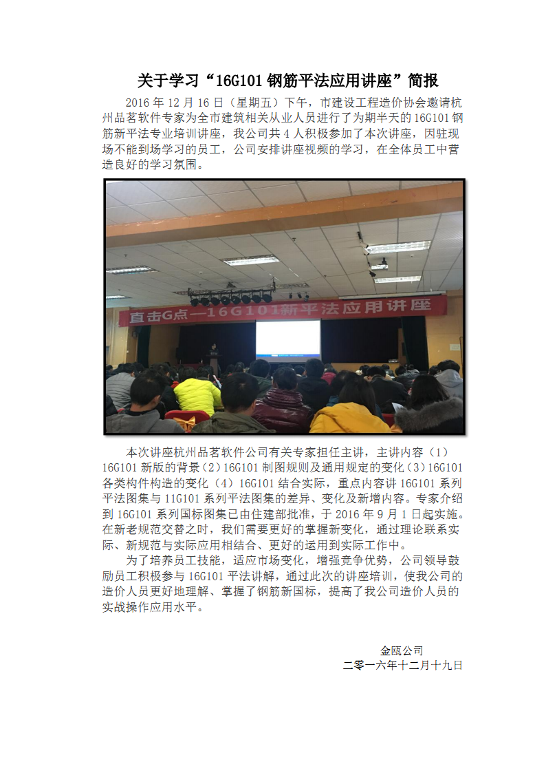 關于學習“16G101鋼筋平法應用講座”簡報