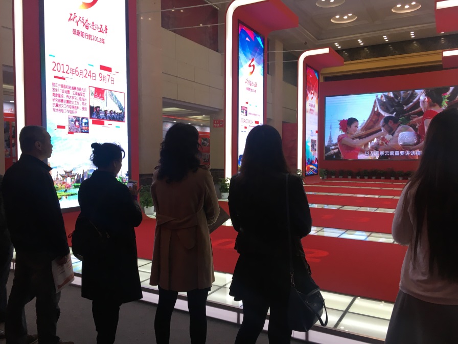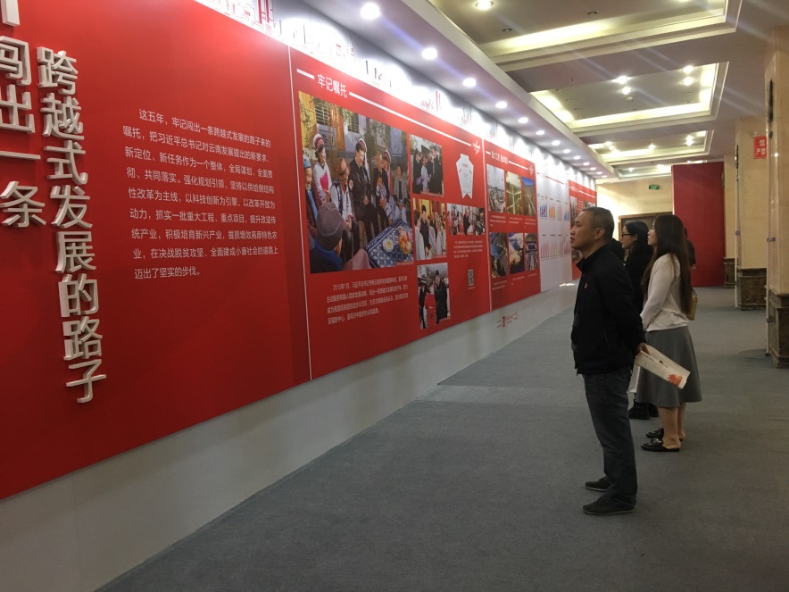 展覽分為闖出一條跨越式發(fā)展的路子、民族團結進步示范區(qū)、生態(tài)文明建設排頭兵、面向東南亞輻射中心、不忘初心繼續(xù)前進等五個部分。展示了黨的十八大以來,省委、省政府團結帶領全省各族人民深入學習貫徹習近平總書記系列講話精神和治國理政新理念、新思想、新戰(zhàn)略以及考察云南重要講話精神的實際行動。展示了云南社會經濟發(fā)展的輝煌成就、各族群眾生活的新變化,以及省委從嚴治黨取得的成效。統籌推進“五位一體”總體布局和協調推進“四個全面”戰(zhàn)略布局,堅持以新理念引領經濟發(fā)展新常態(tài),堅持發(fā)展第一要務和全面從嚴治黨主體責任兩手抓、兩手都要硬,全省經濟社會和黨的建設等各項工作都取得了新成效、發(fā)生了新變化,在決戰(zhàn)脫貧攻堅、推動跨越發(fā)展,全面建設小康社會的道路上邁出了堅實的步伐。