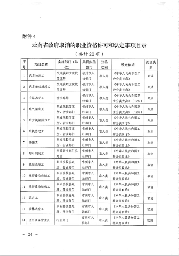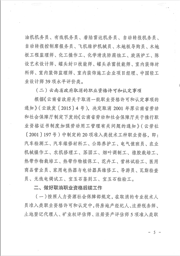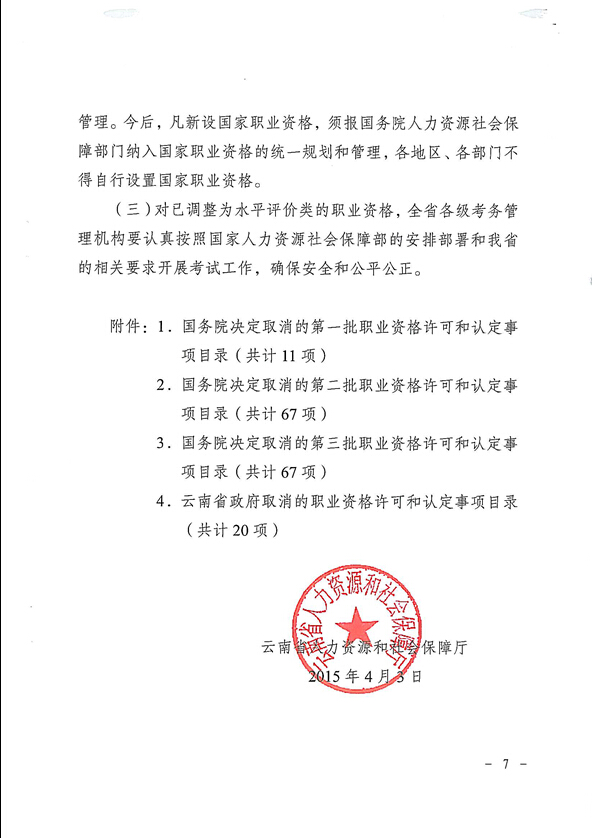 省人力資源和社會保障廳關(guān)于貫徹落實(shí)國務(wù)院云南省政府取消職業(yè)資格許可和認(rèn)定有關(guān)事項(xiàng)的通知