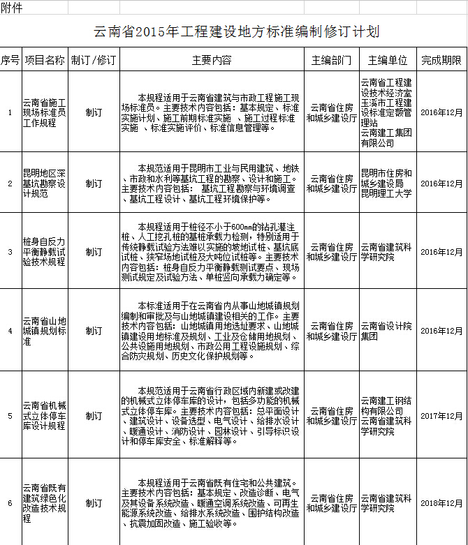 附件:《2015年云南省工程建設(shè)地方標準編制修訂計劃》